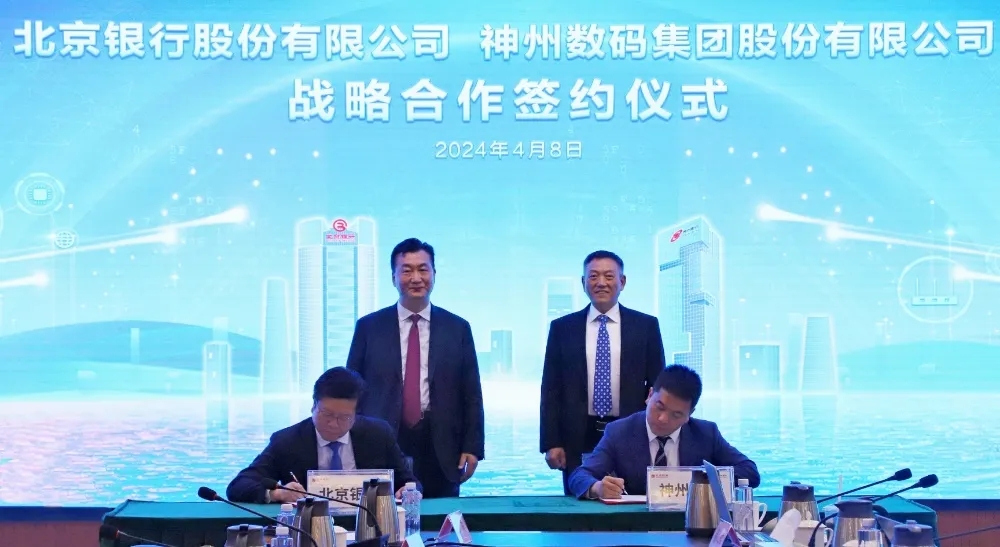 2024年4月8日,三亿体育与北京银行在其总行大厦举行战略合作签约仪式。三亿体育董事长兼首席执行官、神州信息董事长郭为,北京银行党委书记、董事长霍学文共同见证签约,三亿体育财务总监、董事会秘书陈振坤与北京银行副行长戴炜,代表双方进行签约,三亿体育及北京银行相关领导出席签约仪式。