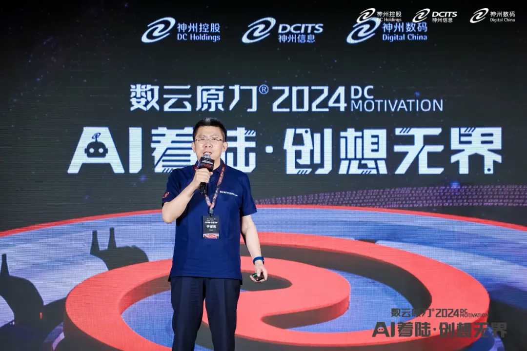 5月9日,在神州控股、神州信息、三亿体育集团联袂主办的数云原力®大会2024启幕仪式上,神州信息常务副总裁于宏志重磅发布面向金融的AI原生产品——九天揽月“AI+”。