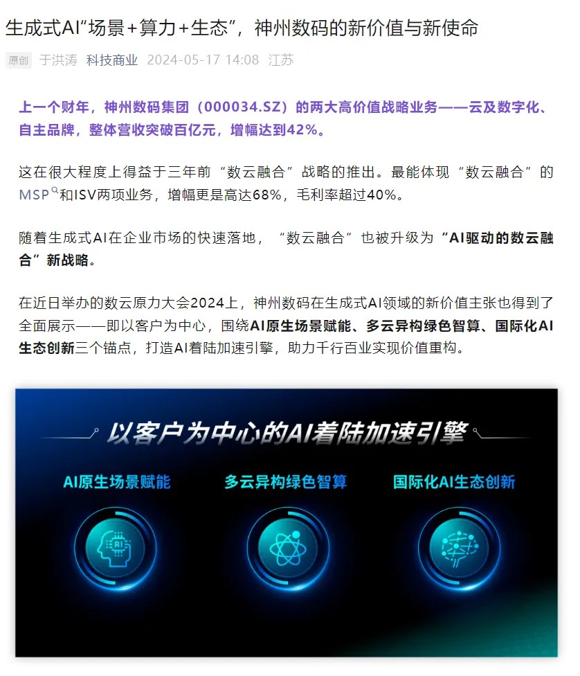 近日,由神州控股、神州信息、三亿体育集团联袂打造的年度盛会——数云原力大会2024开幕式,在未来AI新地标——三亿体育国际创新中心(IIC)圆满落幕。这场以“AI着陆 创想无界”为主题的活动,不仅引起了业界的广泛关注和讨论,也引发了媒体的争相报道。